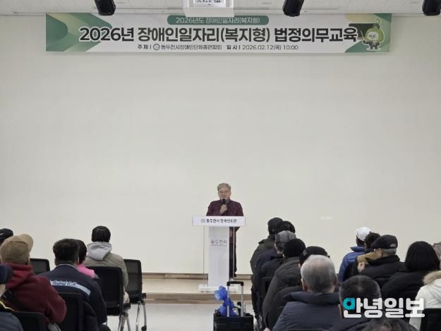 안녕일보 배윤 기자 | 동두천시장애인단체총연합회는 장애인일자리(복지일자리) 참여자의 근로 권익 보호와 안전한 근무환경 조성을 위해 2026년 법정 의무교육을 실시했다. 이번 교육에는 참여자 103명이 참석했다.