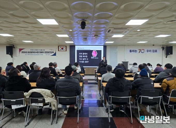 안녕일보 배윤 기자 | 김포시는 지난 12일 김포시청 민방위 재난실전훈련센터에서 2026년 상반기 공공근로 및 지역공동체일자리사업 참여자를 대상으로 산업안전보건교육을 실시했다.