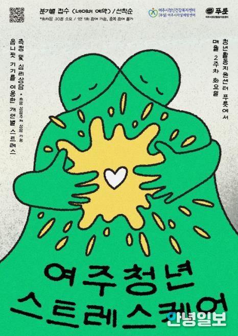 안녕일보 배윤 기자 | 여주시청년활동지원센터 푸릇은 오는 3월부터, 여주시정신건강복지센터와 함께하는 협력사업으로'여주 청년 스트레스 케어(이하 여·스·케)'프로그램을 진행한다고 밝혔다.