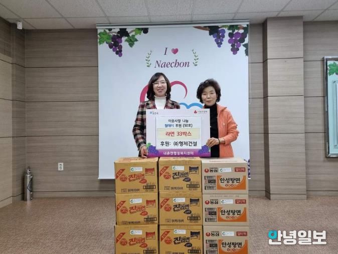 ㈜형제건설(대표 김화숙, 포천시 영중면 소재)은 내촌면 저소득 계층을 위해 라면 33박스(100만 원 상당)를 경기 사회복지공동모금회에 기탁하며 ‘이웃사랑 나눔 릴레이 50호’에 동참했다.