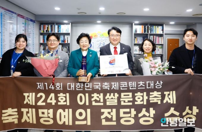 안녕일보 배윤 기자 | 대한민국 대표 농경문화 축제인 ‘이천쌀문화축제’가 24일 서울 전쟁기념관에서 열린 ‘2026 제14회 대한민국축제콘텐츠대상’ 시상식에서 ‘축제 명예의 전당상’을 수상했다.