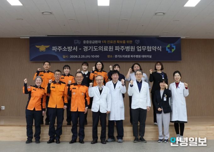 안녕일보 배윤 기자 | 파주소방서는 중증응급환자가 응급실을 찾지 못해 이송이 지연되는 상황(일명, ‘응급실 미수용’)을 줄이고, 골든타임 안에 1차 처치를 보장하기 위해 파주소방서와 경기도의료원 파주병원 업무협약식을 실시했다. 현장에서는 응급실 미수용과 수용 확인 과정이 겹치며 이송이 늦어지는 경우가 있어, 소방과 병원이 같은 기준으로 즉시 대응하는 실무 체계를 마련하려는 취지다.