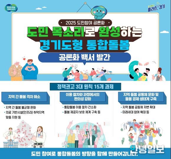 안녕일보 배윤 기자 | 경기도는 ‘도민 목소리로 완성하는, 경기도형 통합돌봄’을 주제로 추진한 2025 경기도 도민참여 공론화를 마무리하고, 3대 기본 원칙(15개 세부과제) 의 도민 정책권고문을 담은 백서를 발간했다고 1일 밝혔다.
