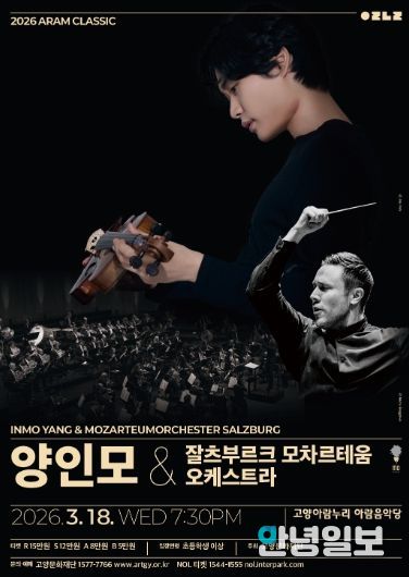 안녕일보 배윤 기자 | (재)고양문화재단은 2026시즌 기획공연 '2026 아람 클래식 – 양인모 & 잘츠부르크 모차르테움 오케스트라'를 오는 3월 18일 오후 7시 30분 고양아람누리 아람음악당에서 개최한다.
