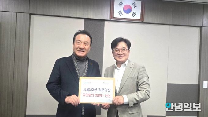 안녕일보 배윤 기자 | 김병수 김포시장이 4일 김포시민의 간절한 염원을 담은 국회국민청원서를 들고 직접 국회를 찾았다. 김 시장은 이날 엄태영 국회 국토교통위원회 청원심사소위원장을 면담하고, ‘서울 지하철 5호선 김포·검단 연장 사업’의 신속한 예비타당성조사 통과와 절차 진행을 강력히 촉구했다.