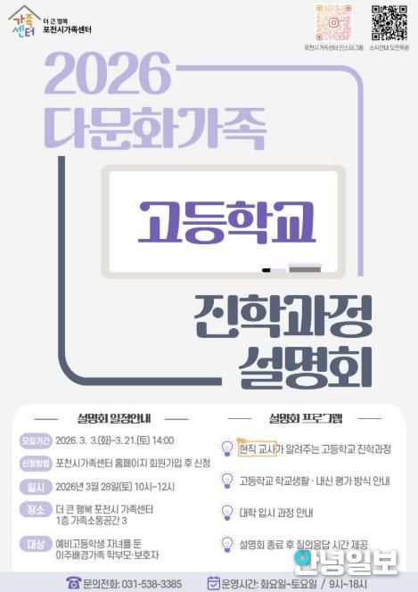 안녕일보 배윤 기자 | 포천시 직영 더 큰 행복 포천시가족센터가 오는 28일, '2026 다문화가족 고등학교 진학과정 설명회'를 개최한다.