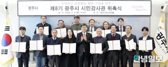 제8기 시민감사관은 총 20명으로, 광주시 거주 시민으로 구성된 명예감사관 5명과 전문 자격 및 실무 경험을 갖춘 전문감사관 15명으로 구성됐다. 임기는 2029년 3월까지 3년이다.