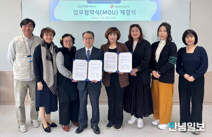 안녕일보 배윤 기자 | 지난 10일, 안성종합사회복지관은 (사)아이코리아 안성지회와 지역사회 내 아동과 가족의 복지 증진 및 지속적인 자원봉사 활동 협력을 위한 업무협약(MOU)을 체결했다.