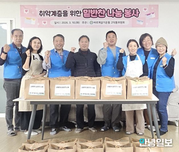 강인기 고덕동장은 “이번 밑반찬 나눔 행사가 취약계층에 따뜻한 선물이 될 것”이라며 “바르게살기운동 위원회의 나눔 활동에 감사드리고, 어려운 이웃분들에게 정성이 담긴 음식을 드릴 수 있어 의미있었다”라고 말했다.