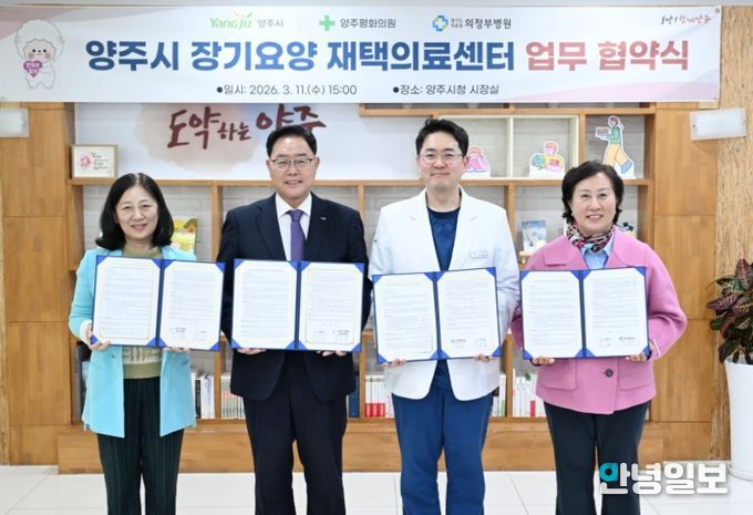 안녕일보 배윤 기자 | 양주시는 11일 시장실에서 양주평화의원, 경기도의료원 의정부병원과 ‘장기요양 재택의료센터 시범사업 추진을 위한 업무협약(MOU)’을 체결했다.
