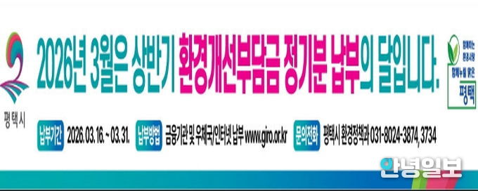 안녕일보 배윤 기자 | 평택시는 쾌적한 생활환경 조성과 환경개선사업 재원확보를 위해 2026년 1기분 환경개선부담금 정기분을 부과하고 체납액 집중 징수에 나선다고 밝혔다.