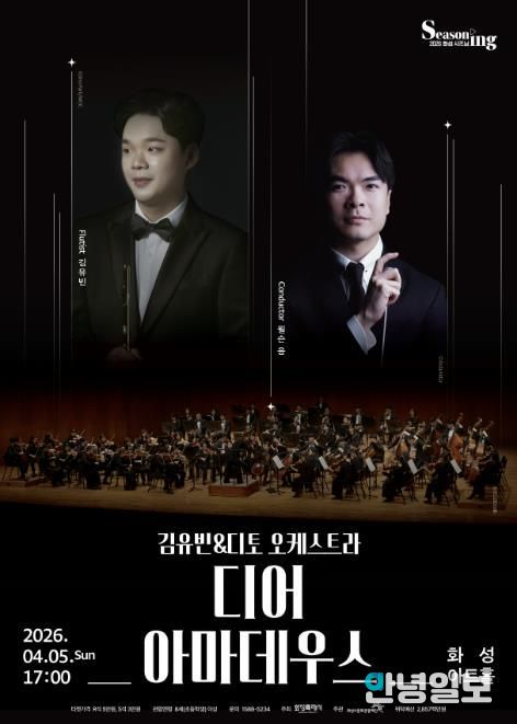 안녕일보 배윤 기자 | (재)화성시문화관광재단은 오는 4월 5일 오후 5시, 화성아트홀에서 김유빈&디토 오케스트라 디어 아마데우스 공연을 개최한다.