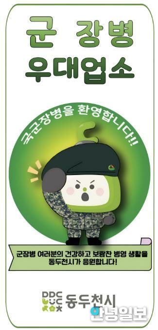 안녕일보 배윤 기자 | 동두천시는 군 장병의 경제적 부담 완화와 군 장병에게 친화적인 지역 환경 조성을 위해 오는 3월 27일까지 ‘군 장병 할인업소’를 모집한다고 밝혔다.