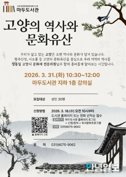 마두도서관 관계자는 “이번 강연을 통해 시민들이 그동안 잘 알지 못했던 고양시의 문화유산과 역사를 알아보고 지역에 대한 이해와 애정을 높이는 시간이 되길 바란다”고 말했다.