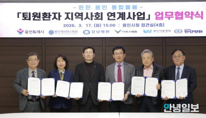 안녕일보 배윤 기자 | 용인특례시는 17일 지역 내 5개 의료기관과 ‘퇴원환자 지역사회 연계 업무협약’을 체결했다고 18일 밝혔다.