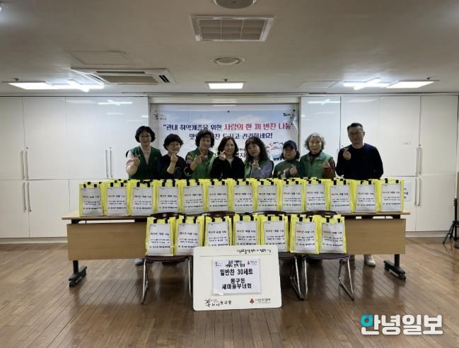 안녕일보 배윤 기자 | 구리시는 동구동 새마을부녀회가 지난 17일 동구동 행정복지센터에서 ‘홀로 어르신 사랑의 한 끼 밥상’ 나눔 봉사를 진행했다고 밝혔다. 이번 활동은 지역 내 홀로 거주하는 어르신들에게 정성껏 준비한 식사와 반찬을 전달하며 따뜻한 이웃의 정을 나누기 위해 마련됐다.
