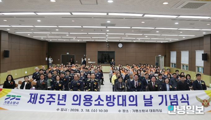 안녕일보 배윤 기자 | 가평소방서는 18일 3층 대강당에서 지역사회 안전을 위해 헌신해 온 의용소방대의 노고를 기리고 사기를 진작하기 위한 ‘제5주년 의용소방대의 날 기념행사’를 개최했다고 밝혔다.