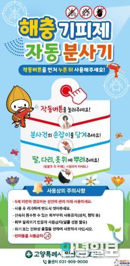 안녕일보 배윤 기자 | 고양특례시 일산동구보건소는 관내 설치된 해충기피제 자동분사기와 포충기, 유문등 등의 3월 조기가동에 문제가 없도록, 방역 관련 장비 총 101개의 상태를 확인하는 사전 전수점검을 완료했다고 18일 밝혔다.