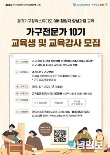 현재 가구 디자인 및 제작 분야에 관심 있는 경기도민 대상으로 교육생을 모집하고 있으며, 기초 제작부터 디자인, 창업 역량 강화 교육까지 체계적인 프로그램이 제공될 예정이다.