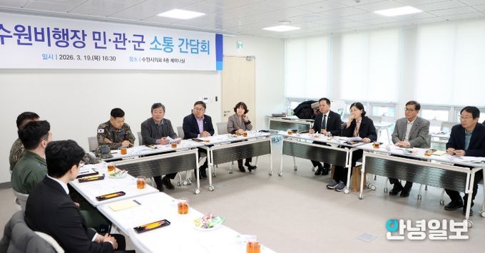 안녕일보 배윤 기자 | 수원특례시의회는 19일 의회 세미나실에서 공항 소음피해지역 주민들과 군, 시 관계자가 함께하는 ‘민·관·군 소통 간담회’를 개최하고 소음피해 해소를 위한 실질적인 대응 방안 마련에 나섰다.