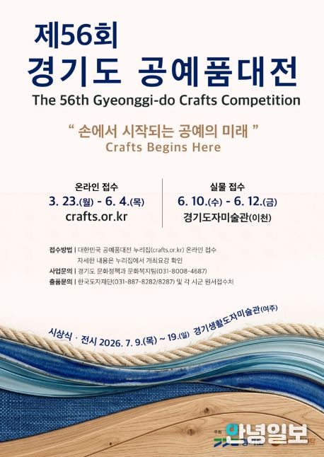 안녕일보 배윤 기자 | 경기도와 한국도자재단이 ‘제56회 경기도공예품대전’을 개최하고, 3월 23일부터 6월 4일까지 참가 작품 접수를 진행한다.
