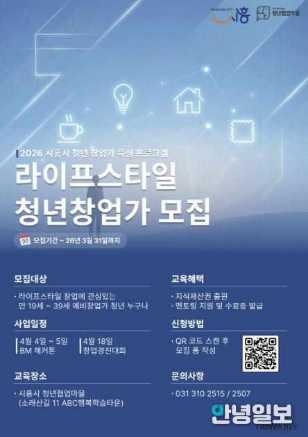 안녕일보 배윤 기자 | 시흥시는 ‘2026 청년 창업가 육성 프로그램’의 일환으로 라이프스타일 분야 예비 청년창업가를 대상으로 실전형 창업 프로그램인 ‘창업 해커톤’과 ‘창업 경진대회’를 운영하고, 오는 3월 31일까지 참가자 30명을 모집한다.