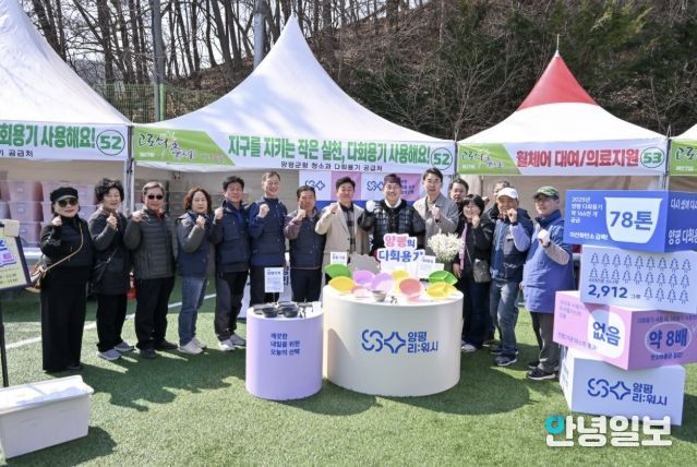 안녕일보 배윤 기자 | 양평군은 지난 21일부터 22일까지 이틀간 열린 제27회 양평단월고로쇠축제에서 군이 자체 제작한 다회용기 12만 개를 사용해 약 5.6톤의 탄소를 감축했다고 밝혔다. 이는 소나무 약 45그루가 60년간 흡수하는 이산화탄소량에 해당하는 수준이다