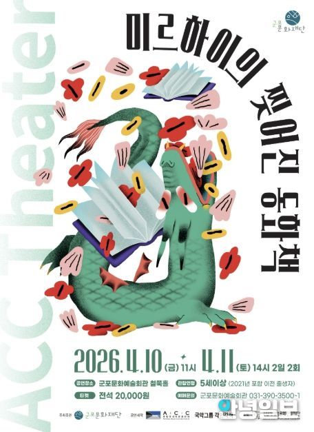 안녕일보 배윤 기자 | 군포문화재단은 어린이와 가족이 함께 관람할 수 있는 공연 '미르하이의 찢어진 동화책'을 4월 10일~11일 군포문화예술회관 철쭉홀에서 개최한다고 밝혔다. 이번 공연은 2026 국립아시아문화전당재단 어린이 공연 유통 공모사업의 일환으로, 국립아시아문화전당(ACC) 창·제작 어린이 공연을 지역에 소개하기 위해 마련됐다.