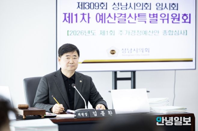 안녕일보 배윤 기자 | 성남시의회 국민의힘 김종환 의원(판교·백현·운중·대장동, 예산결산특별위원장)은 제309회 성남시의회 임시회에서 녪년도 제1회 추가경정예산안’이 예산결산특별위원회 심사를 거쳐 통과·의결됐으며, 이는 기정예산 대비 약 2,396억 원(6.08%)이 증액된 총 4조 1,804억 원 규모라고 밝혔다.