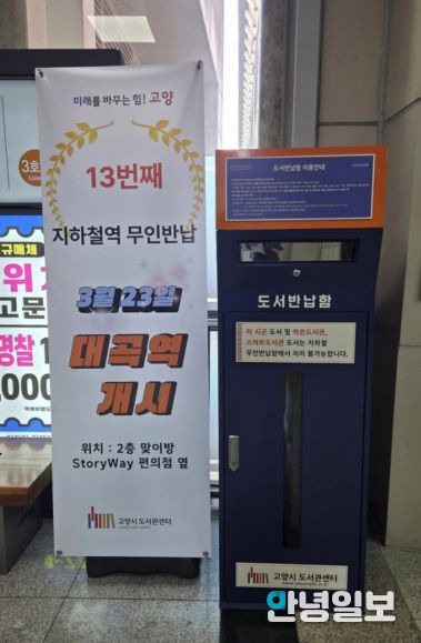 안녕일보 배윤 기자 | 고양특례시 도서관센터는 시민들의 도서 반납 편의를 높이기 위해 대곡역에 무인도서반납함을 설치했다고 24일 밝혔다.
