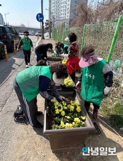 안녕일보 배윤 기자 | 평택시 신장2동 행정복지센터는 지난 23일 새마을부녀회 회원과 동 직원 등 30여 명이 참여한 가운데, 관내 주요 도로변 및 도시재생구역 일대에 봄꽃 심기 작업을 했다고 밝혔다.