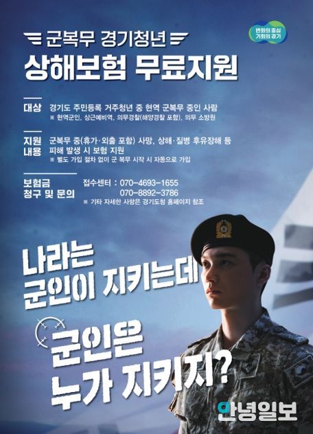 안녕일보 배윤 기자 | 경기도가 군복무 중 발생할 수 있는 사고로부터 청년을 보호하기 위해 ‘군복무 경기청년 상해보험’ 지원 사업을 올해도 이어간다.