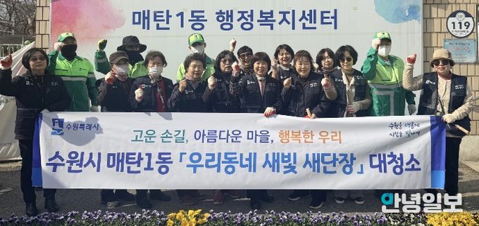 안녕일보 배윤 기자 | 영통구 매탄1동 행정복지센터는 지난 24일, '우리동네 새빛 새단장' 사업의 일환으로, 새봄맞이 대청소 및 초화 식재 활동을 실시했다.