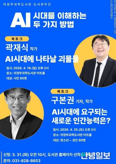 안녕일보 배윤 기자 | 의정부과학도서관은 ‘제62회 도서관주간’과 ‘제4회 도서관의 날’을 맞아 4월 19일부터 30일까지 ‘AI 시대를 이해하는 두 가지 방법’을 주제로 시민 대상 작가 북토크를 개최한다.