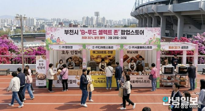 안녕일보 배윤 기자 | 부천시는 3월 28일부터 30일까지 3일간 부천종합운동장 2층 트랙에서 ‘부천페스타 봄꽃여행’과 연계한 식품제조업소 팝업스토어 ‘B(Bucheon)-푸드 셀렉트 존’을 운영한다.