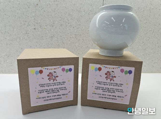 신현은 민간위원장은 “지역 예술인의 따뜻한 나눔 덕분에 우리 마을의 소중한 생명을 더욱 특별하게 환영할 수 있게 됐다”며, “달항아리에 담긴 행운의 기운이 각 가정에 잘 전달되길 바란다”고 전했다.