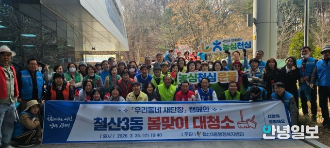 안녕일보 배윤 기자 | 광명시 철산3동 행정복지센터는 25일 관내 쾌적한 환경 조성을 위해 주민들과 함께하는 ‘봄맞이 대청소’를 실시했다.