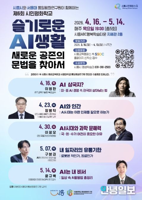 김상동 평생교육원장은 “인공지능이 일상의 문법을 바꾸고 있는 지금, 시민들이 막연한 두려움을 버리고 미래를 주도적으로 설계할 수 있도록 이번 프로그램을 준비했다”라며 “국내 최고 수준의 석학들과 소통하며 인공지능 시대의 새로운 평화와 공존의 길을 찾는 소중한 시간이 되길 바란다”라고 말했다.