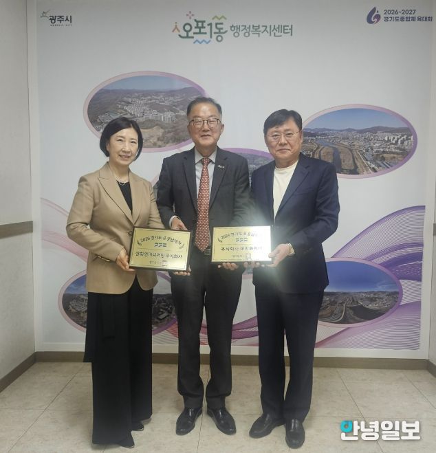 안녕일보 배윤 기자 | 광주시 오포1동은 지난 25일 경기도 유공납세자로 선정된 삼화엔지니어링㈜ 대표와 ㈜제이와이이 대표에게 유공납세자 현판을 전달했다.