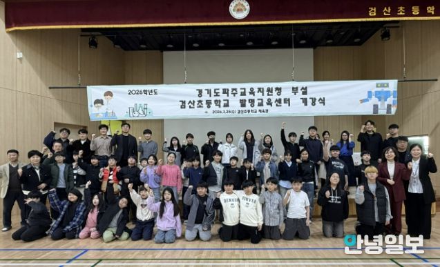 안녕일보 배윤 기자 | 경기도파주교육지원청은 2026년 3월 25일 16시 검산초등학교 체육관에서 ‘2026 파주교육지원청부설 검산초 발명교육센터 개강식’을 개최했다.