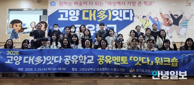 안녕일보 배윤 기자 | 경기도고양교육지원청은 3월 25일 고양공유학교 삼송캠퍼스 이룸소극장에서 ‘2026 고양 다잇다 공유학교 공유멘토 잇다 워크숍’을 개최하고 성황리에 마무리했다.