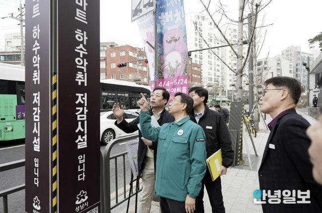 신상진 성남시장도 점검에 나서 3월 26일 오전 신흥2동, 중앙동, 은행2동에 있는 스마트 하수 악취 저감시설을 차례로 찾아가 살펴봤다.
