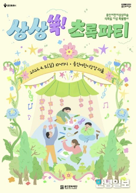 안녕일보 배윤 기자 | 용인문화재단은 오는 4월 5일 식목일을 맞아 용인어린이상상의숲에서 특별행사 '상상쑥! 초록파티'를 개최한다고 밝혔다.