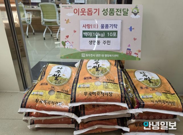 안녕일보 배윤 기자 | 생연1동 행정복지센터는 지난 26일 관내 주민으로부터 어려운 이웃을 위한 따뜻한 나눔의 쌀(10kg) 10포를 기탁받았다고 밝혔다.