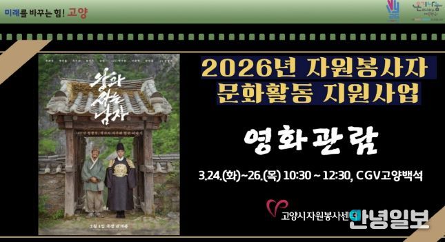 안녕일보 배윤 기자 | 고양시자원봉사센터는 지난 24일에서 26일까지 3일간 CGV 고양백석점에서 ‘2026년 자원봉사자 문화활동 지원사업’을 성공적으로 개최했다.