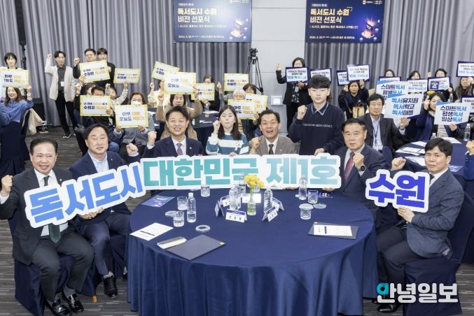 안녕일보 배윤 기자 | 지방정부 최초로 ‘독서국가’ 선언에 동참한 수원시가 ‘독서도시 수원’ 비전을 선포했다. 비전 선포식은 3월 30일 시청 중회의실에서 열렸다.
