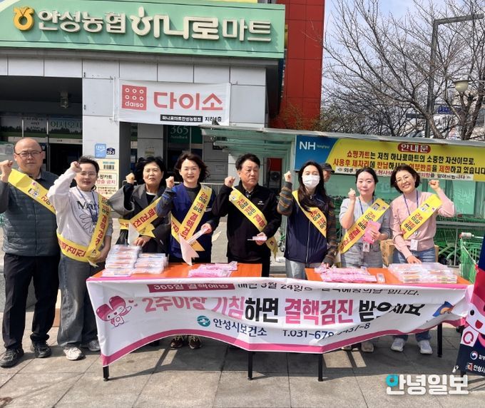 안녕일보 배윤 기자 | 안성시보건소는 ‘제16회 결핵 예방의 날(3월 24일)’을 맞아 지난 3월 25일 관내 유동 인구가 많은 안성농협 하나로마트 정문 및 안성시장 인근에서 ‘결핵 예방 캠페인’을 실시했다고 밝혔다.