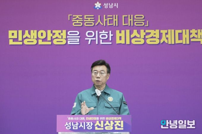 신상진 성남시장은 이날 오전 11시 시청 모란관에서 중동사태 대응 민생안정을 위한 비상경제 대책 기자회견을 열고 “중동 사태로 인한 서민 경제 부담을 완화하고, 지방정부가 앞장서 지원에 나설 수 있도록 중앙정부가 역할을 다해주기를 바란다”며 국가 재난 선포 필요성을 강조했다.