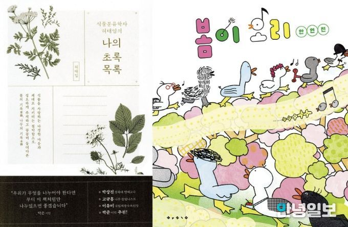 이달의 추천도서는 식물분류학자가 풀과 나무를 따라가며 얻은 기록을 엮은 '식물분류학자 허태임의 나의 초록목록'(일반도서/허태임 지음)과 봄의 설렘과 새싹의 생동감을 아이의 눈높이에 맞춰 풀어낸 '봄이 오리'(아동도서/한연진 지음)이다.