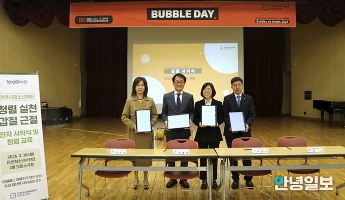 안녕일보 배윤 기자 | 안양시청소년재단은 지난 30일 만안청소년수련관 도담소극장에서 전 직원을 대상으로 내부 커뮤니케이션 행사 ‘버블데이(BUBBLE DAY)’를 운영하며 조직 소통과 청렴문화 확산에 나섰다.